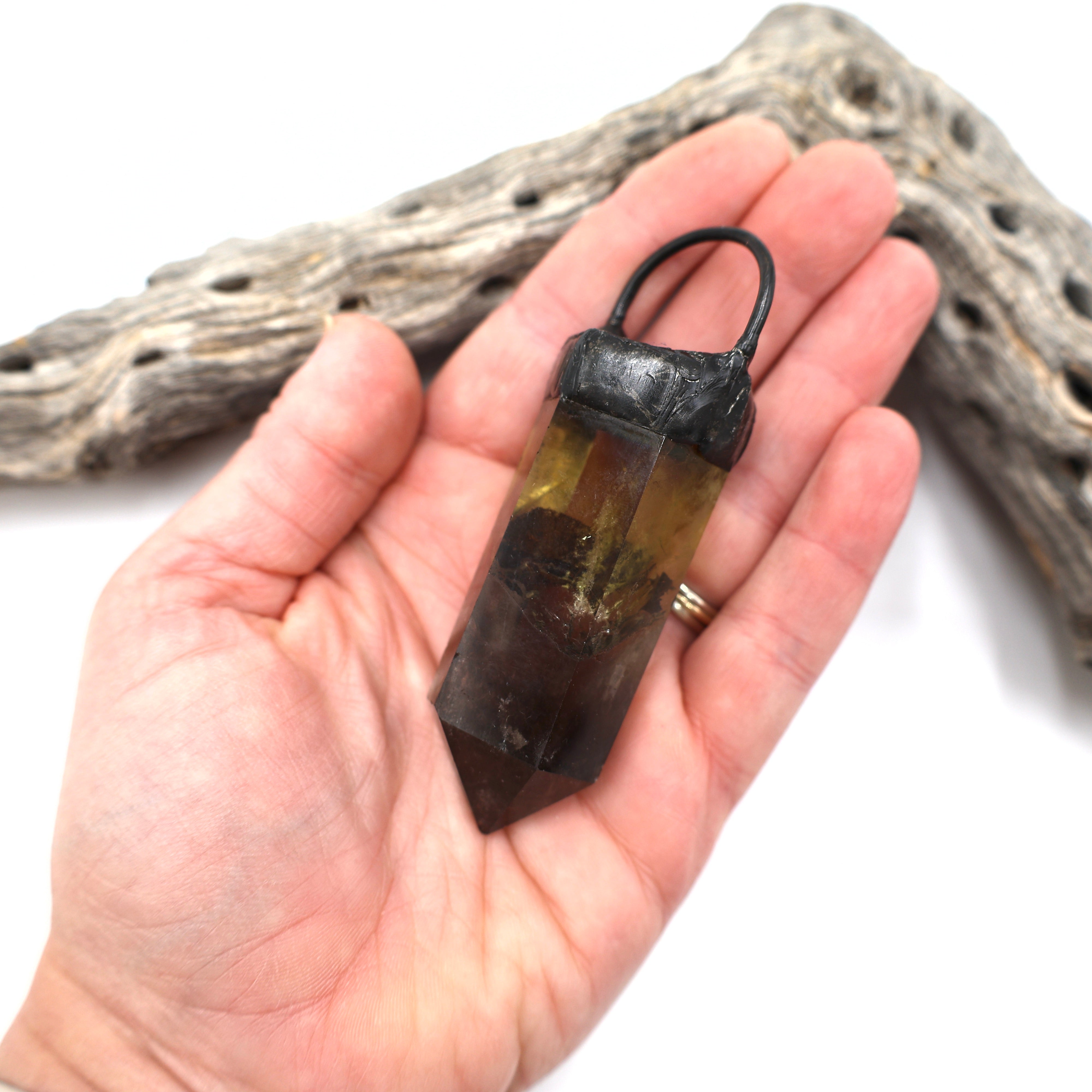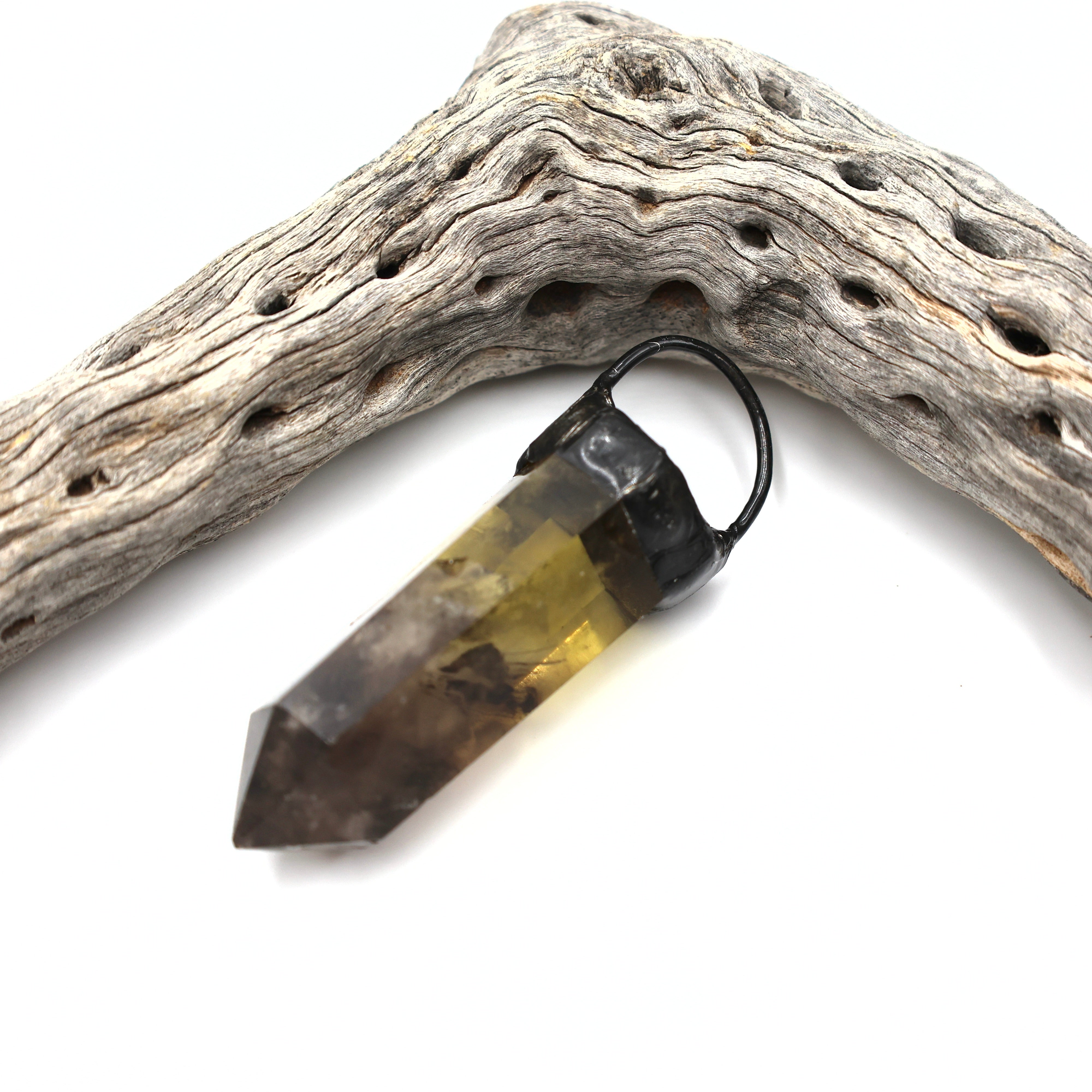 Giant Citrine Smoky Quartz Soldered Crystal Pendant (OAK81)